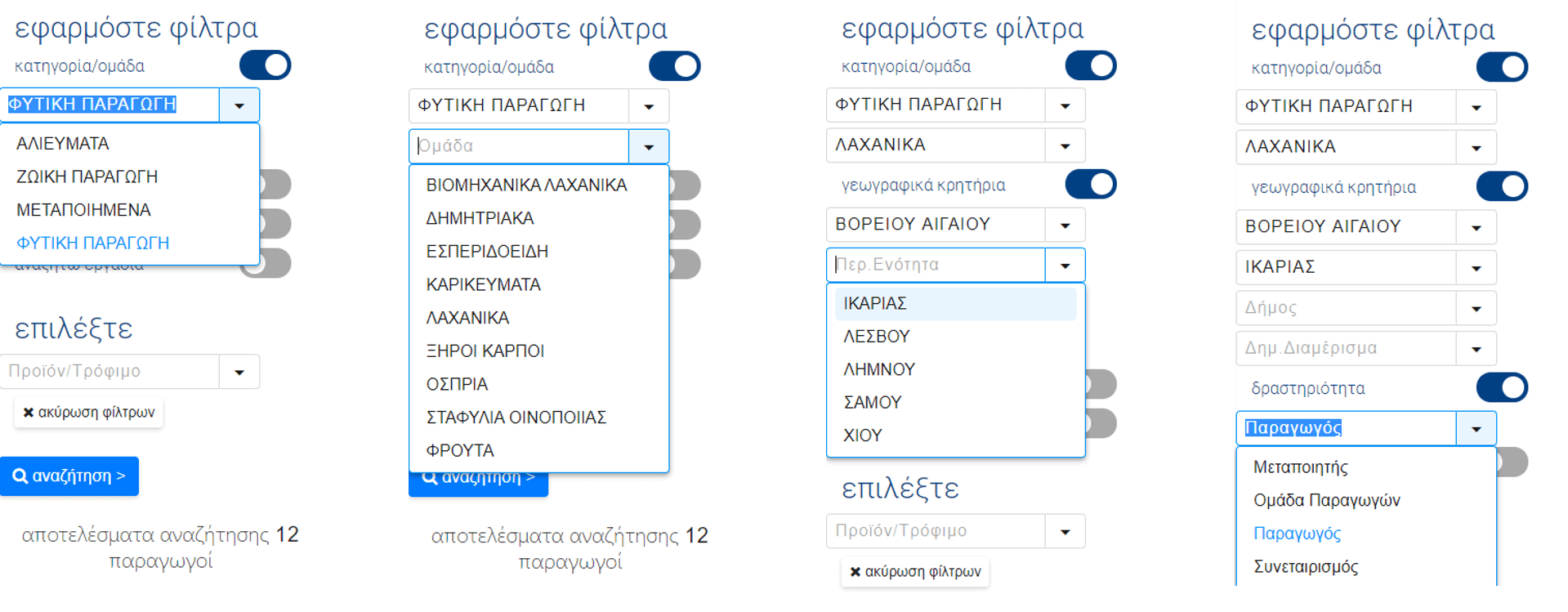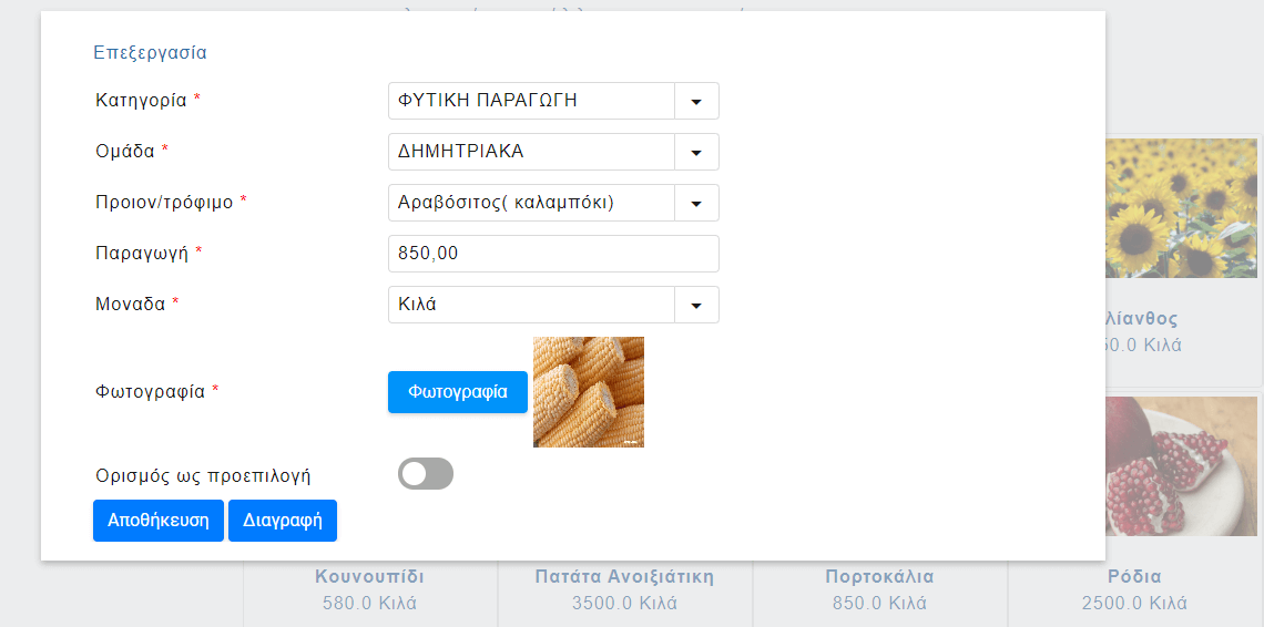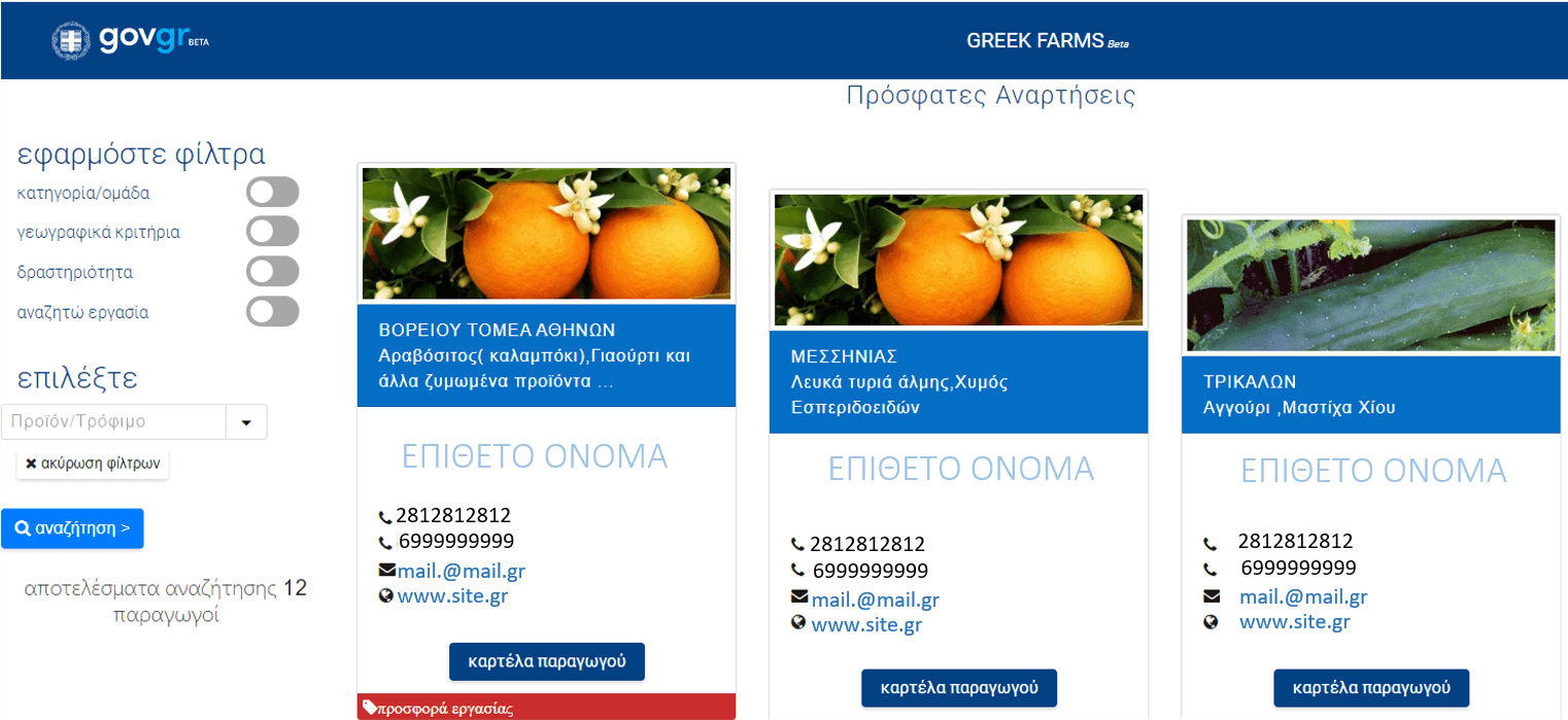 Αναζήτηση διαθέσιμης παραγωγής για καταναλωτές
