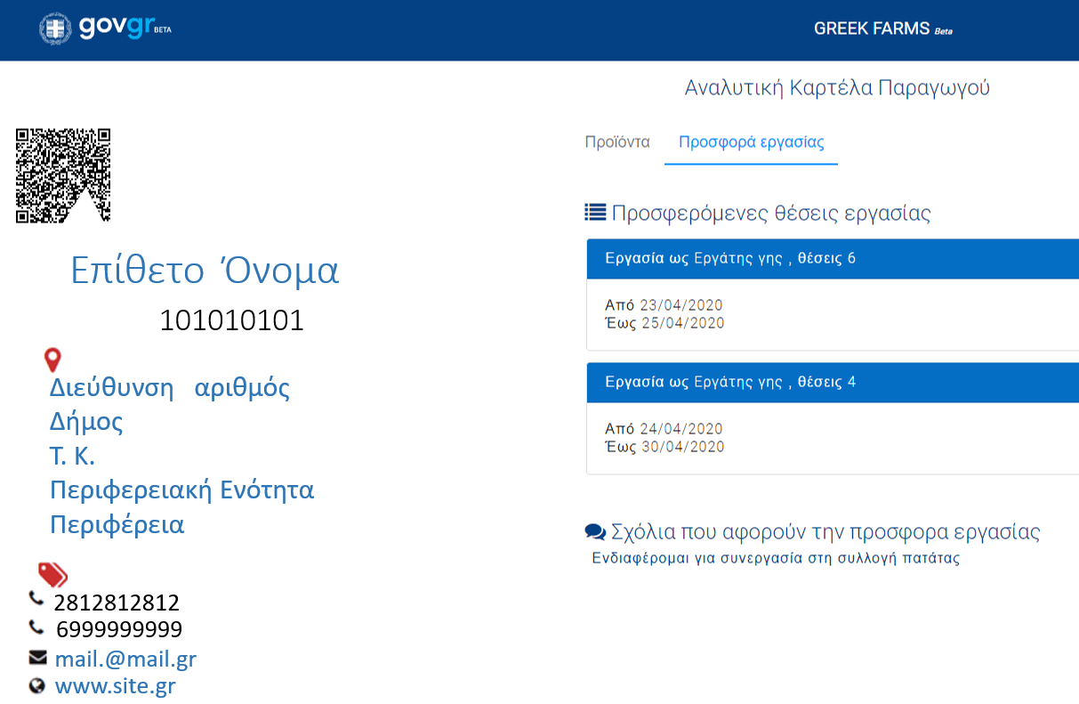 Επιπλέον, παρέχεται η δυνατότητα στους εργοδότες αγροτικών εργασιών να ανακοινώνουν νέες θέσεις εργασίας εργατών γης.